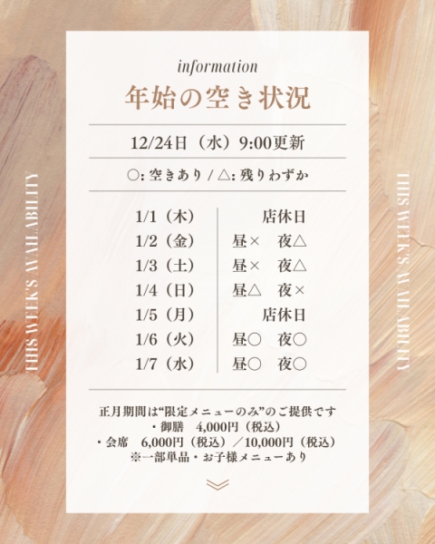 本日1月6日(火)お休み頂きます