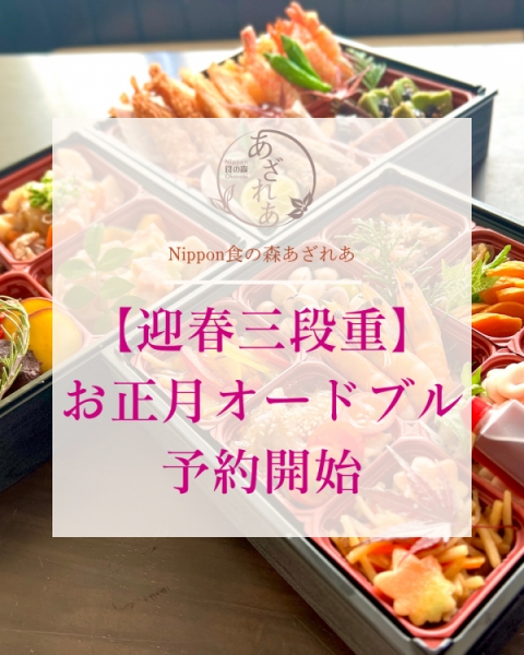 Nippon食の森あざれあより、正月期間限定の特別仕立て 《迎春三段重》 をご用意いたしました。