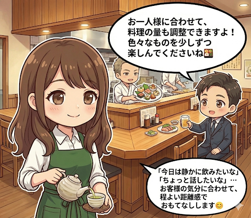 「今日は大将と料理の話で盛り上がりたいな😆」という日も、